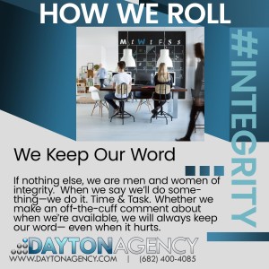 - Whether we make an off-the-cuff comment about when we’re available, or we over commit ourselves on a project, we will always keep our word— even when it hurts.
